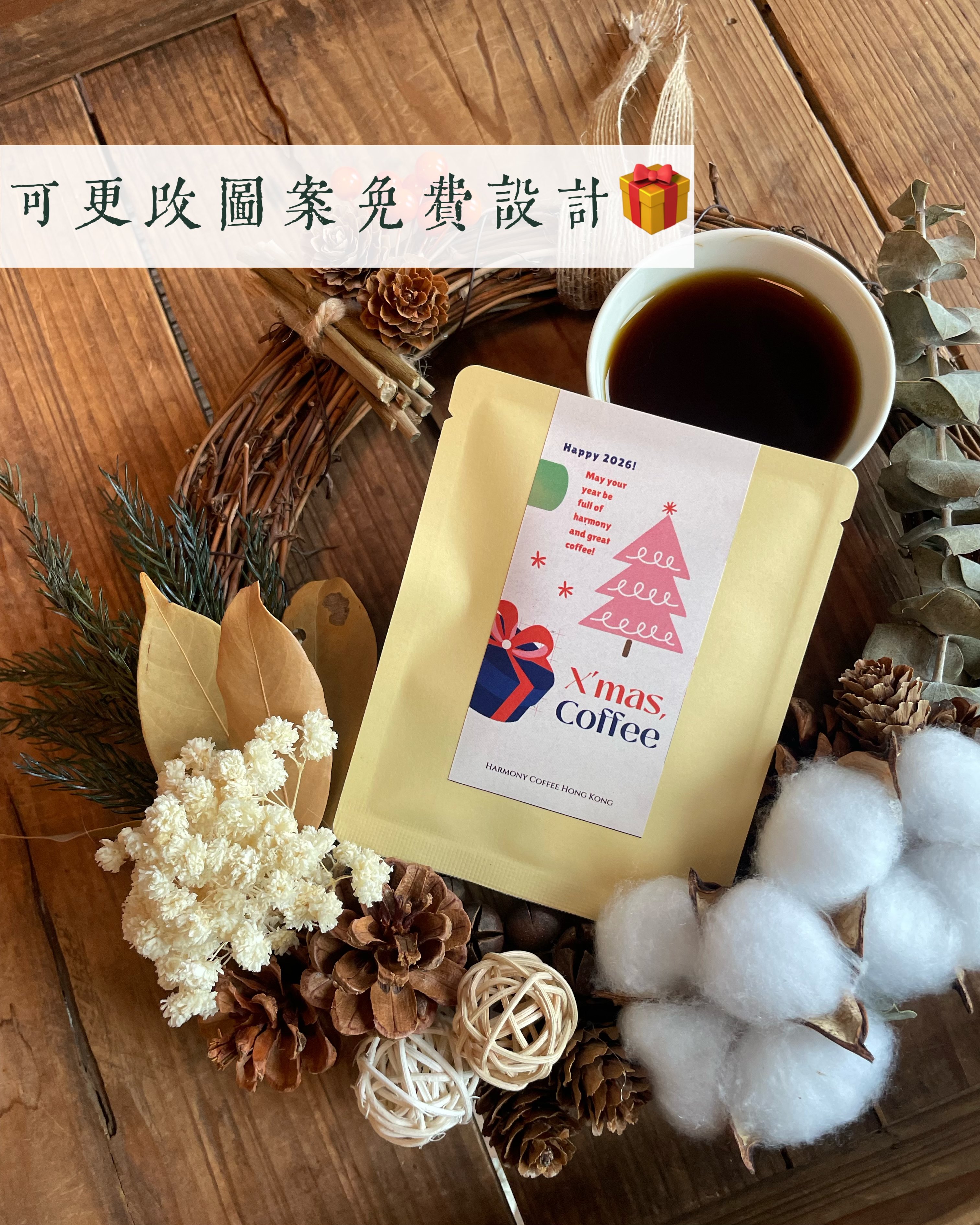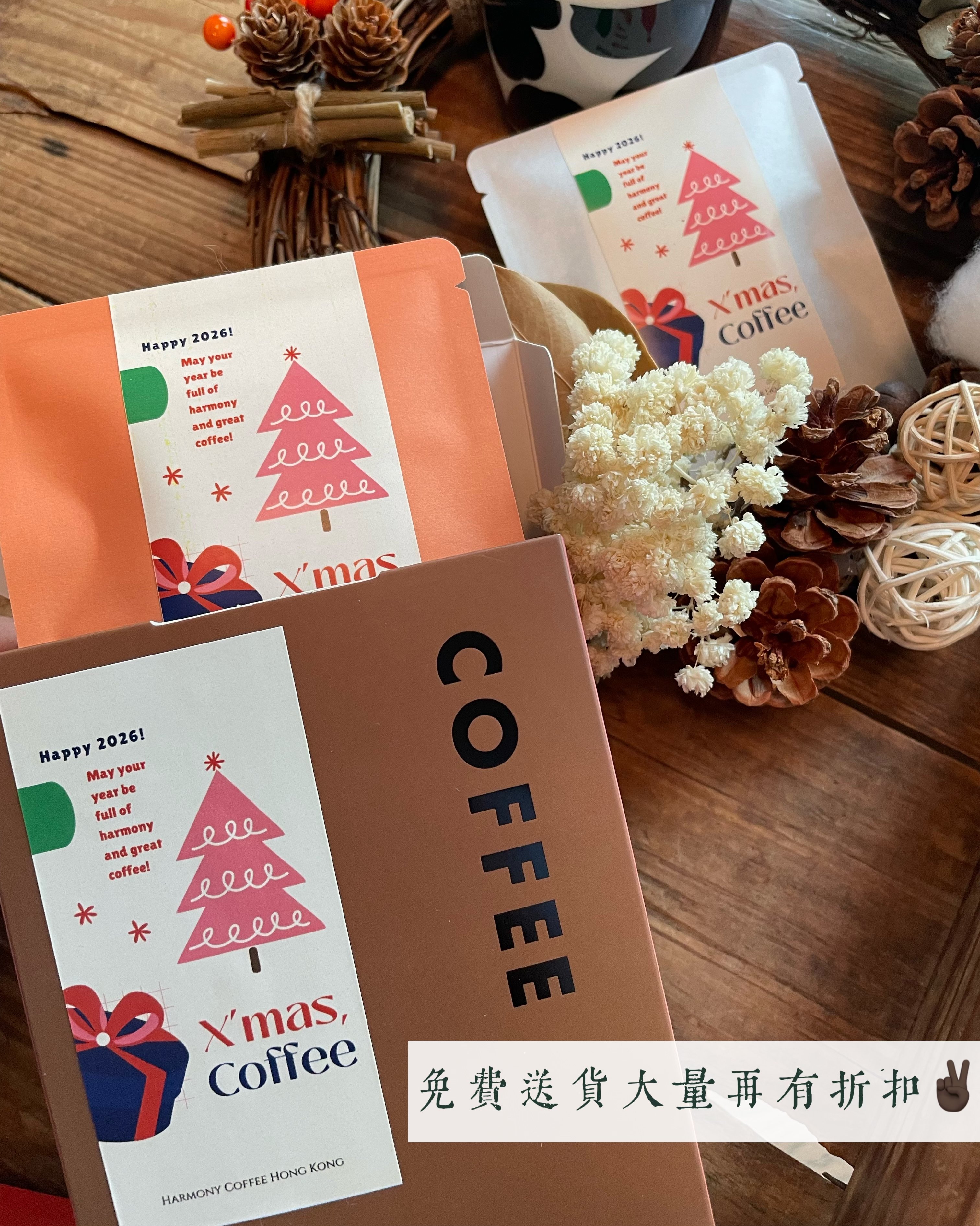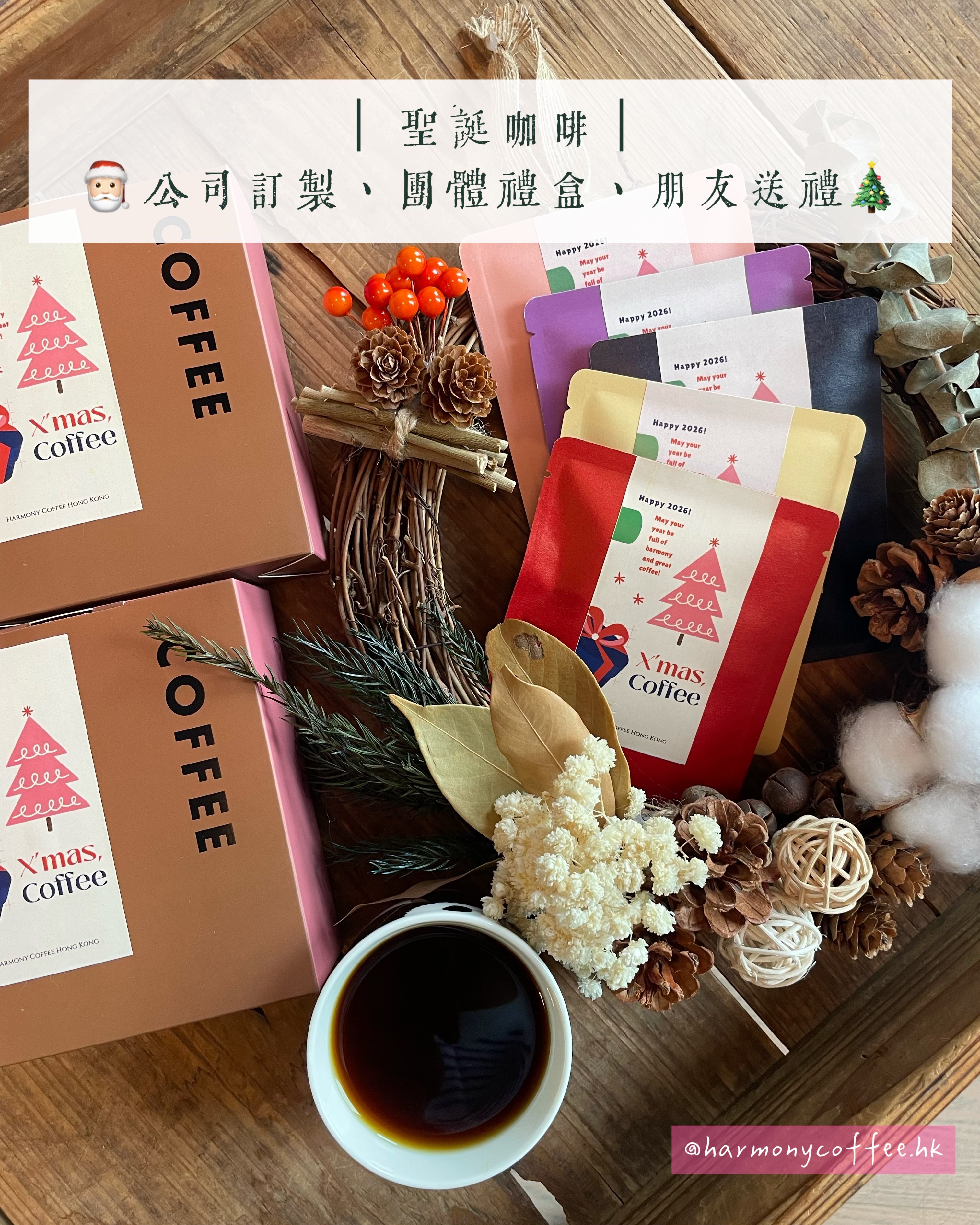 聖誕花環是店主親手做的🎄 你也想擁有一個? 咁就要快啲預訂聖誕咖啡禮盒 店主會稍後神秘地邀請大家參加花環工作坊✨ . . 🎅🏻套裝1. 訂製咖啡賀禮: - Harmony Coffee咖啡掛耳包5包 - 訂製公司機構名稱、Logo圖案 - 訂製朋友名字 - 訂製專屬署名 - 訂製祝福句子 - 唔訂製都得嘅實物如圖所示~ - 禮盒包裝🎁 價格:$108 (原價$138) . . 🎅🏻套裝2. 訂製咖啡賀禮: - Harmony Coffee咖啡掛耳包10包 - 訂製公司機構名稱、Logo圖案 - 訂製朋友名字 - 訂製專屬署名 - 訂製祝福句子 - 唔訂製都得嘅實物如圖所示~ 價格:$208 (原價$238) . . 🎅🏻套裝3. 手工香薰蠟燭 + 掛耳咖啡:(聖誕最浪漫禮物combo😘❤️) - Harmony Coffee咖啡掛耳包5包 - 香港烘焙咖啡豆手工香薰蠟燭 (可選薰衣草或焦糖燉蛋香味) - 禮袋包裝 價格:$258 (原價$398) . . 11月早鳥優惠: - 5盒88折 - 10盒8折 - 大量訂製Discount請向店主查詢!^^ . . 祝福大家 節日快樂🍾️2026好運連連! #聖誕禮物 #訂製禮物 #交換禮物 #公司抽獎 #員工禮物 #企業訂製 #客製禮物 #咖啡 #推薦 #男朋友禮物 #女朋友禮物 #香港小店 #推薦 #打卡 #Party